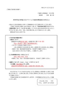 年末年始の新型コロナウイルス感染対策追加のお知らせ